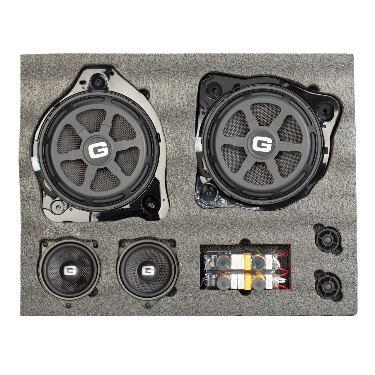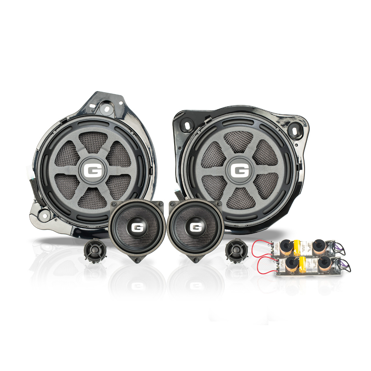 Tuned crossover with tweeter matching, plug & play without damaging the wiring harness in the vehicle