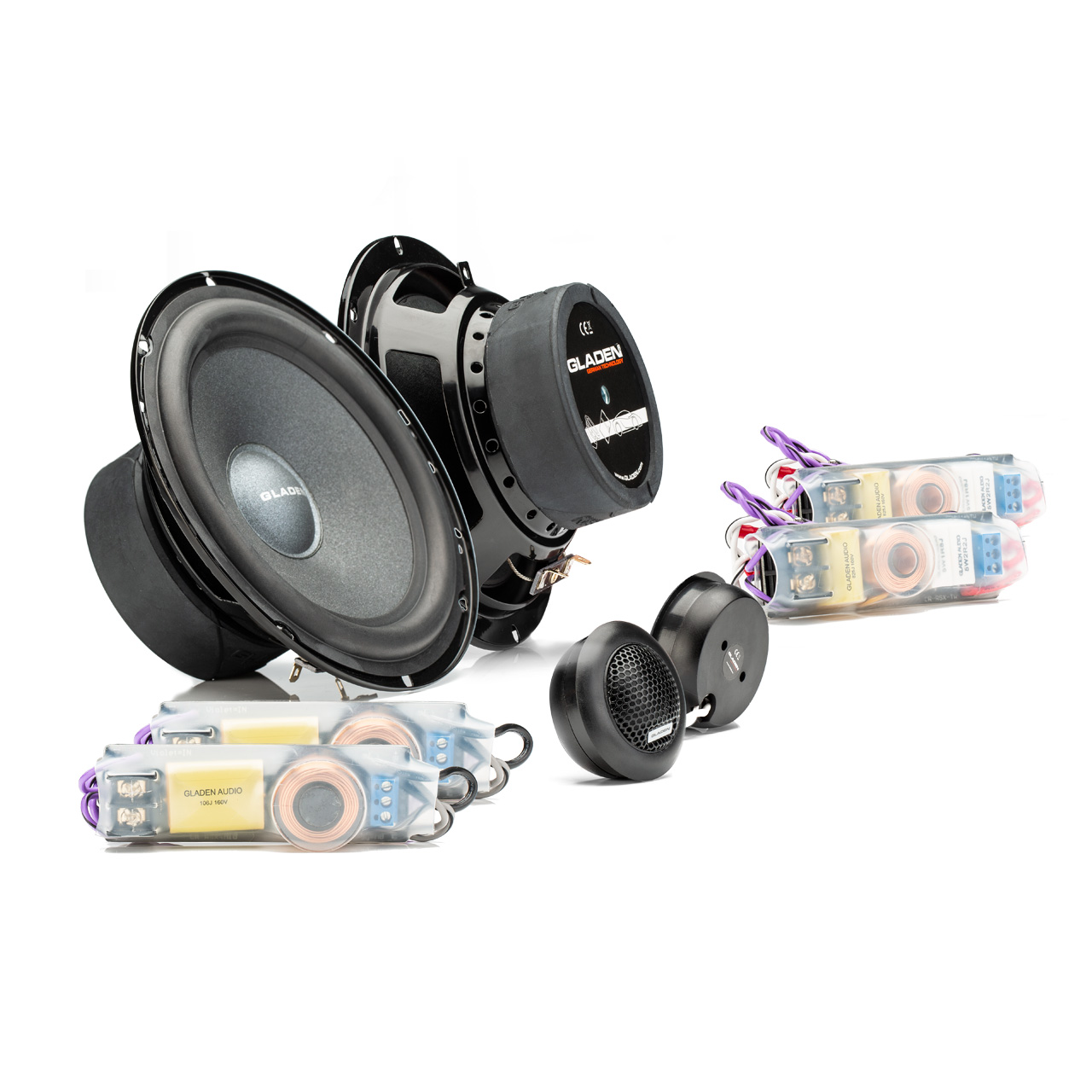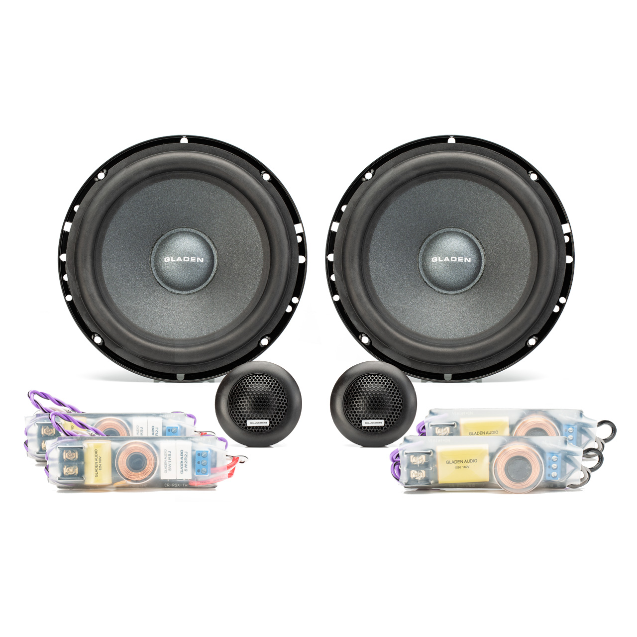 The Gladen RSX 165 is a universal 2-way speaker system with a 165 mm woofer and a 28 mm dome tweeter. The crossover of the RSX 165 has a shrink tube crossover each for the tweeter and woofer. Thus, the RSX system is easy and universally mountable. Furthermore, the separate crossovers allow bi-amping operation (eg with a 4-channel amplifier).