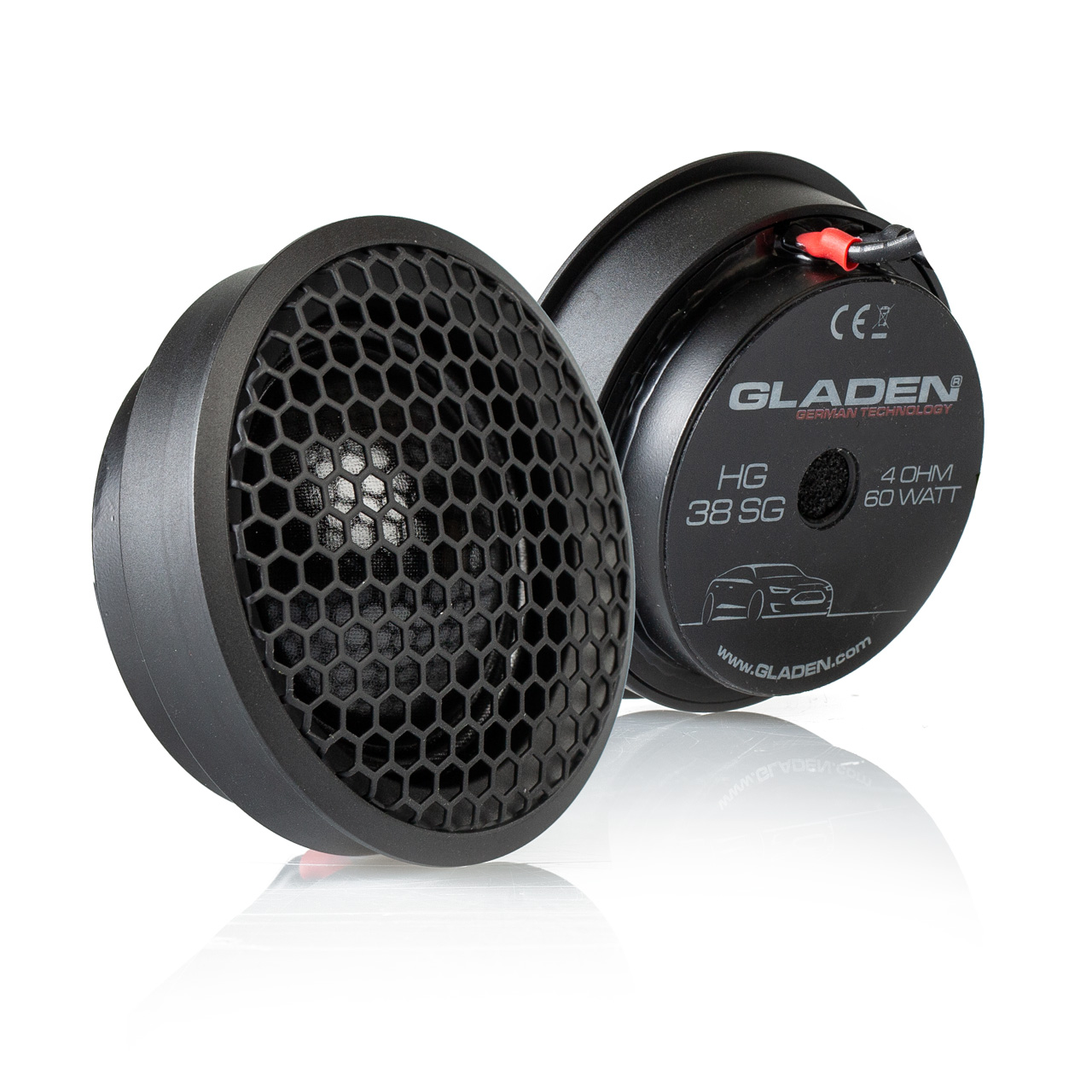 The Gladen GA-38SG (NG) represents a special feature on the car audio speaker. It has an above-average diaphragm and is therefore able to play deeper into the midrange (up to 2000 Hz) than conventional 25 mm or 28 mm tweeters. Thus, for example, in problem vehicles where woofers are positioned unfavorably and thus have a reduced midrange reproduction, this can be compensated by the Gladen GA-38SG.